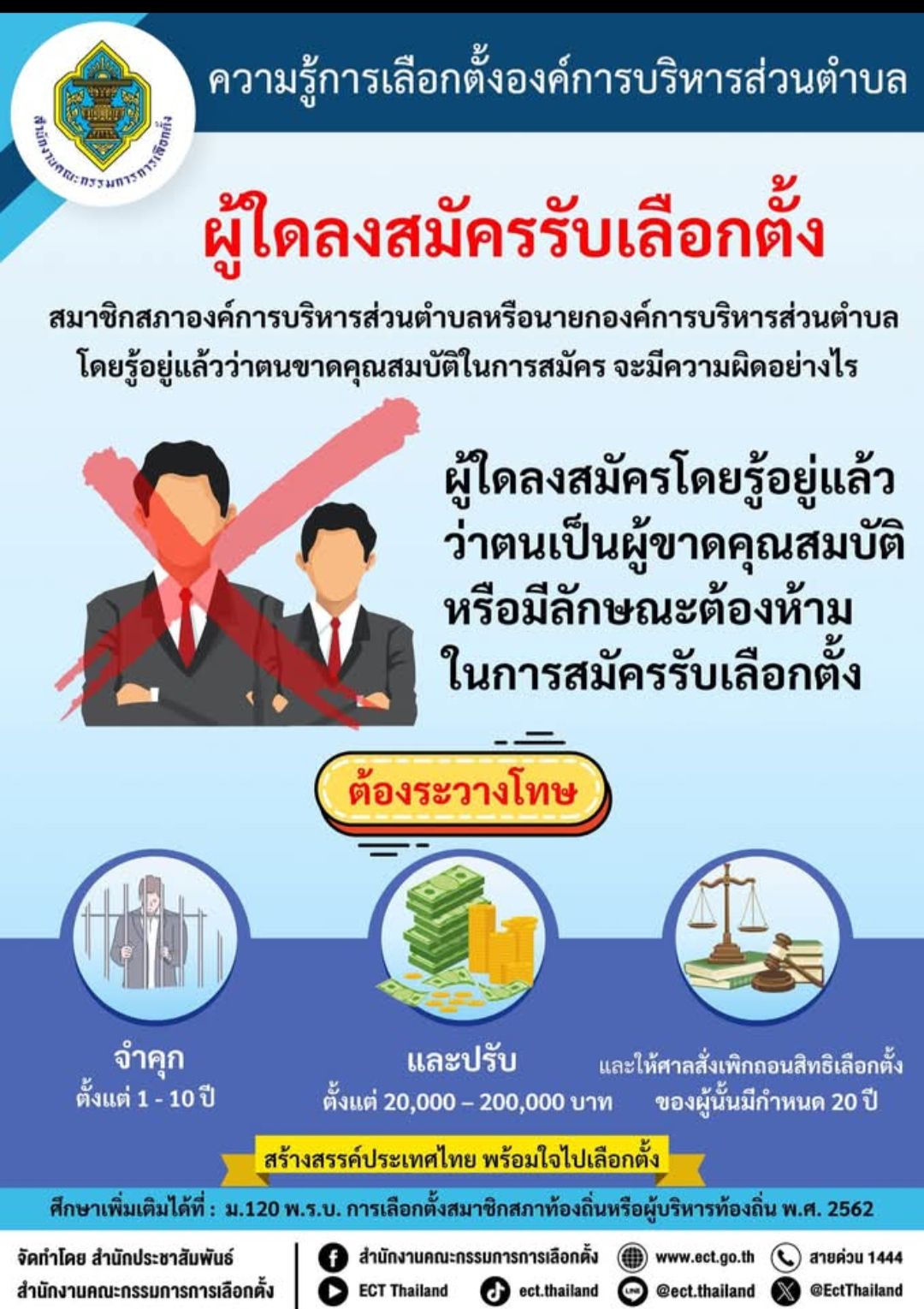 หัวข้อ :: ผู้สมัครต้องรู้ ! หาก “รู้ตัวว่าขาดคุณสมบัติหรือมีลักษณะต้องห้าม” แต่ยังลงสมัครรับเลือกตั้ง มีความผิดตามกฎหมาย